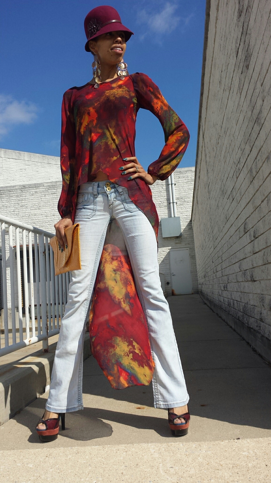 Hat: Thrifted. Top: Primrose Boutique. Jeans: Thrifted. Shoes: Jessica Simpson. Earrings: KoKo Dolls.