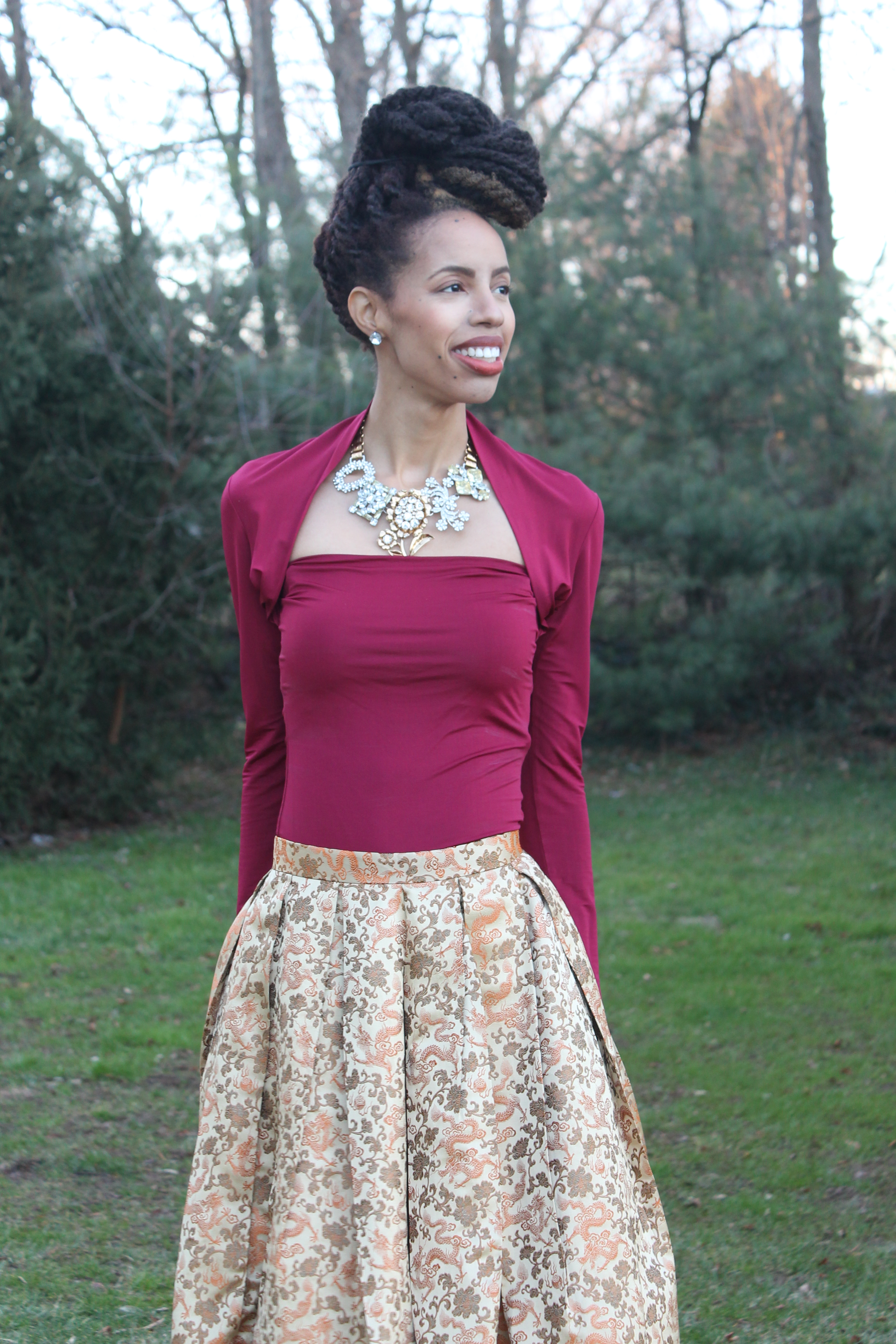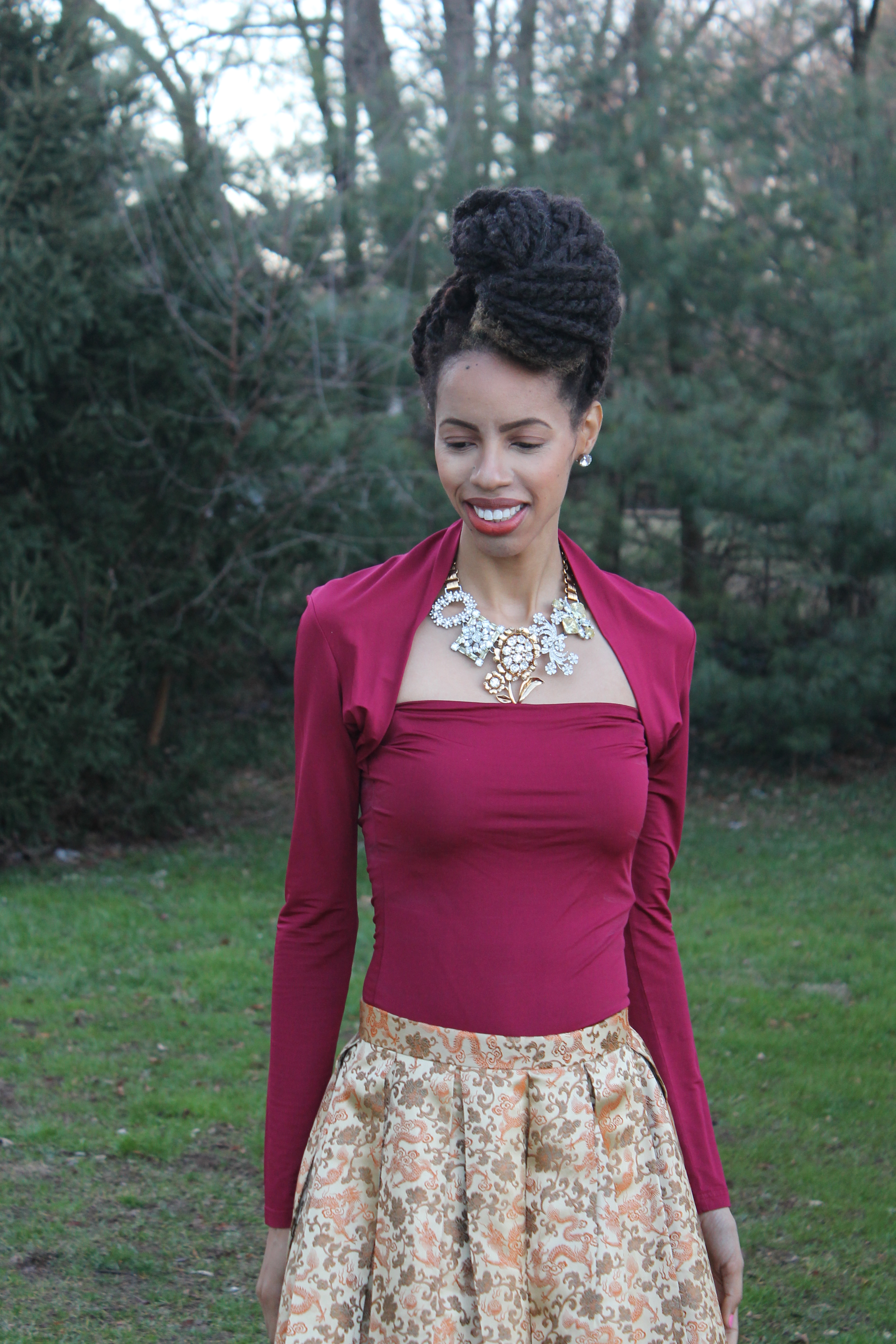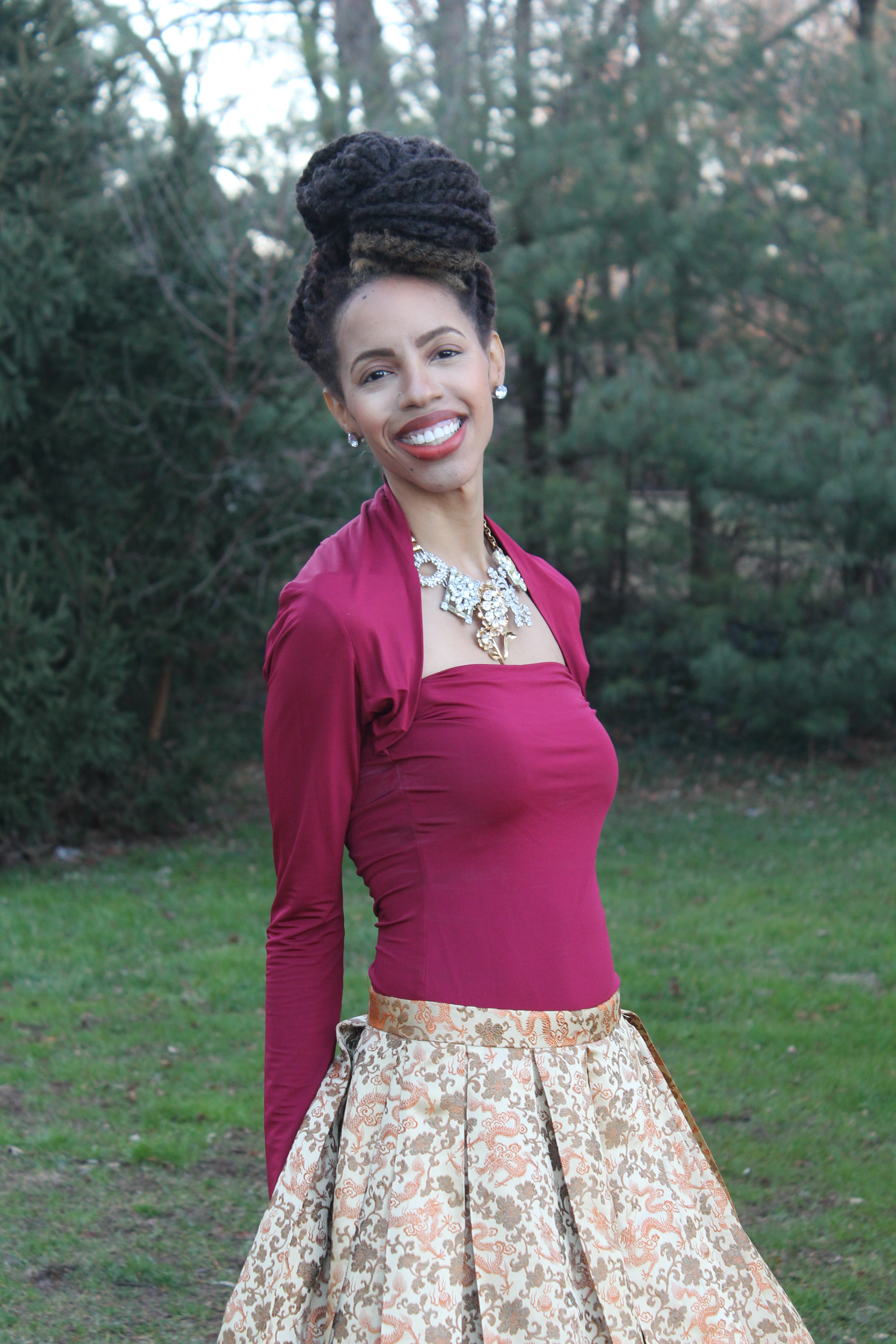 Skirt: Vintage. Necklace: Banana Republic. Top: Victoria’s Secret. Hair: ZarahCharm.com.