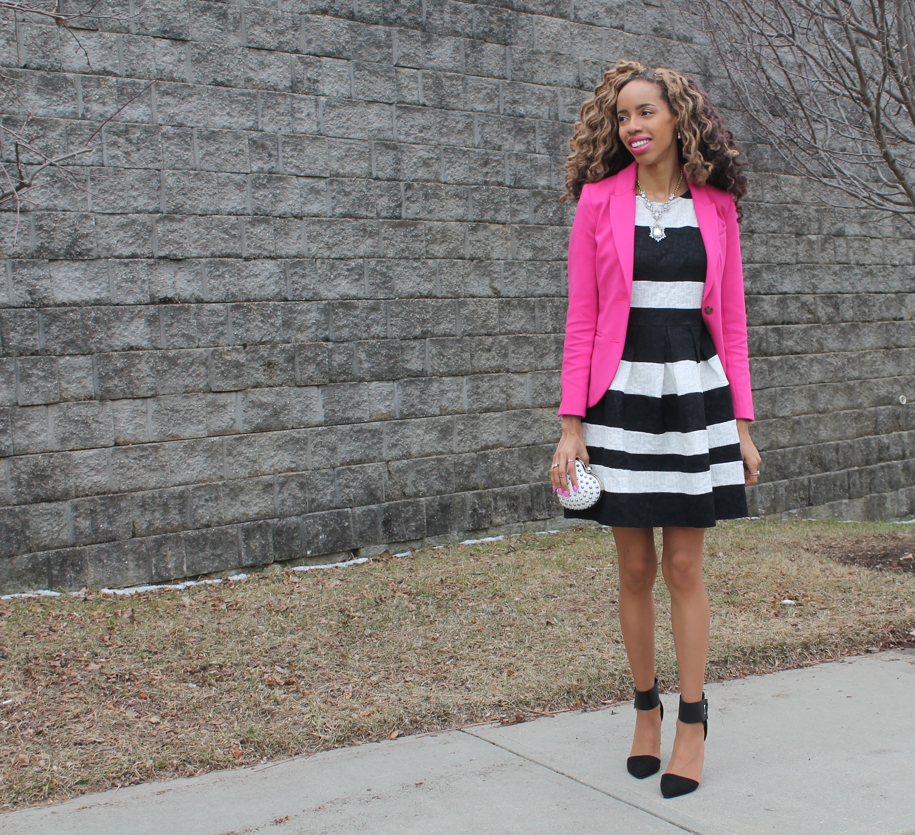 I am not the biggest fan of the color pink, but girlfriend, you are changing my mind! This blazer is fabulous and it serves as the perfect pop of color against your dress. Styling can really change something and you’ve managed to make me want a pink blazer! ❤