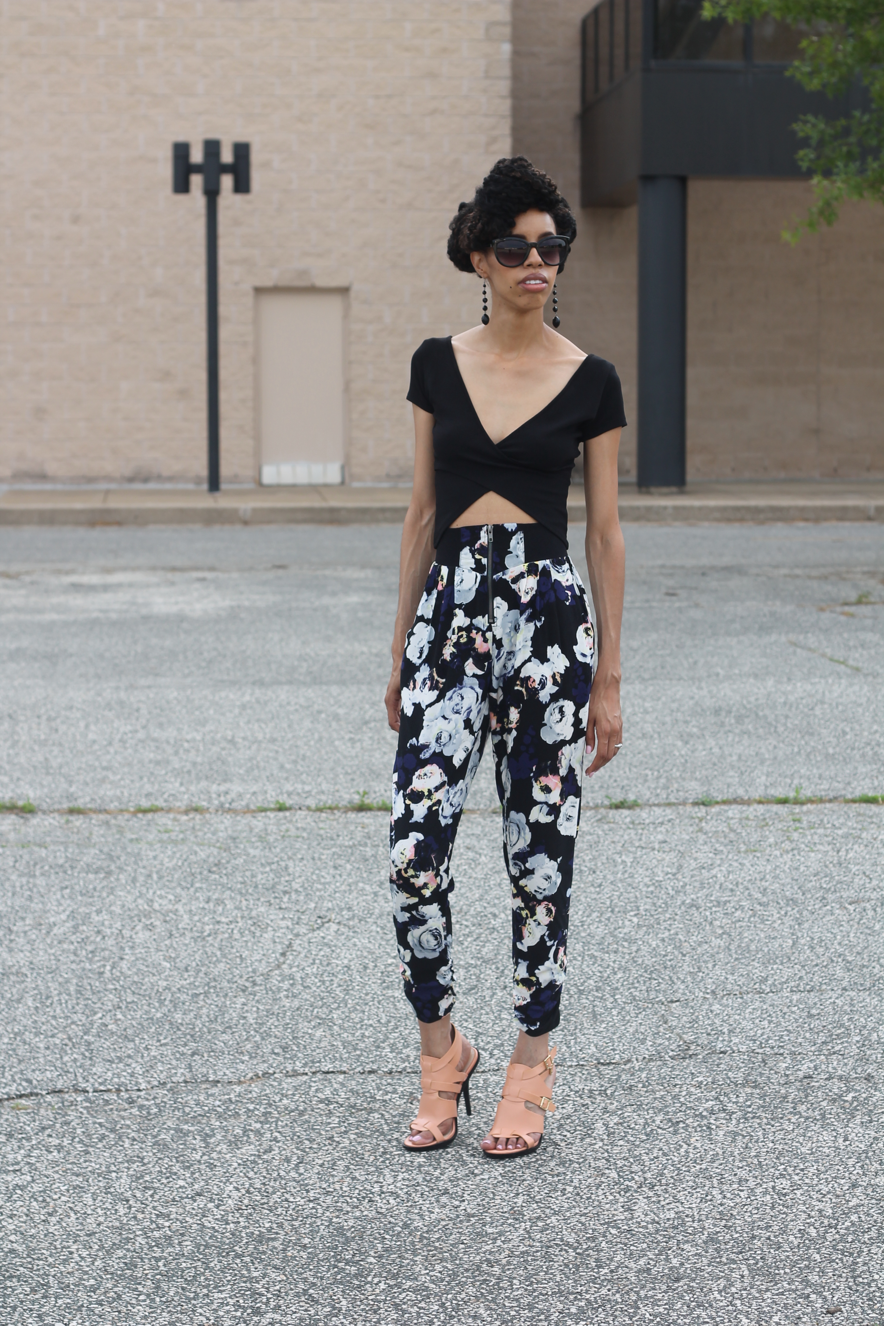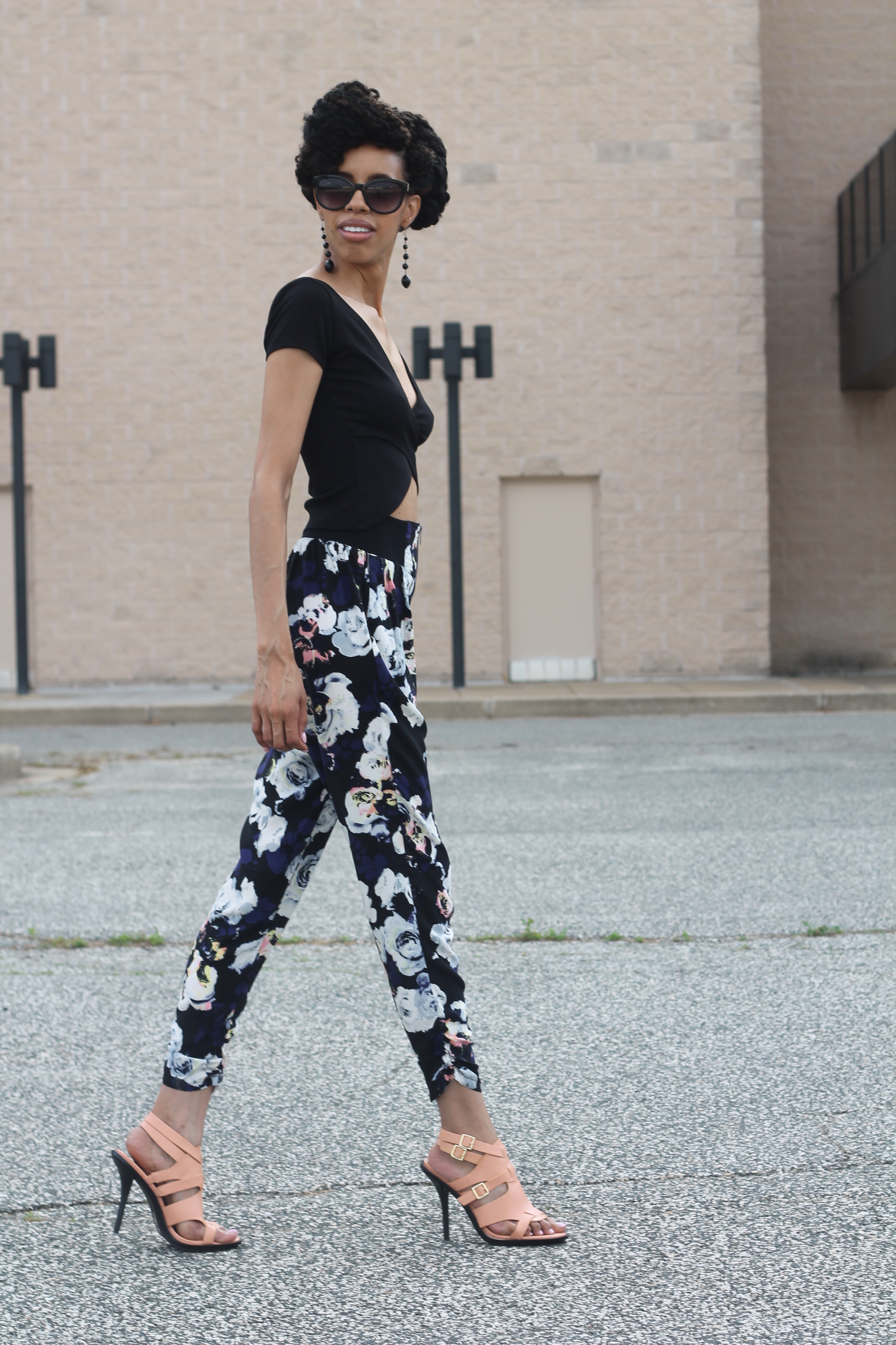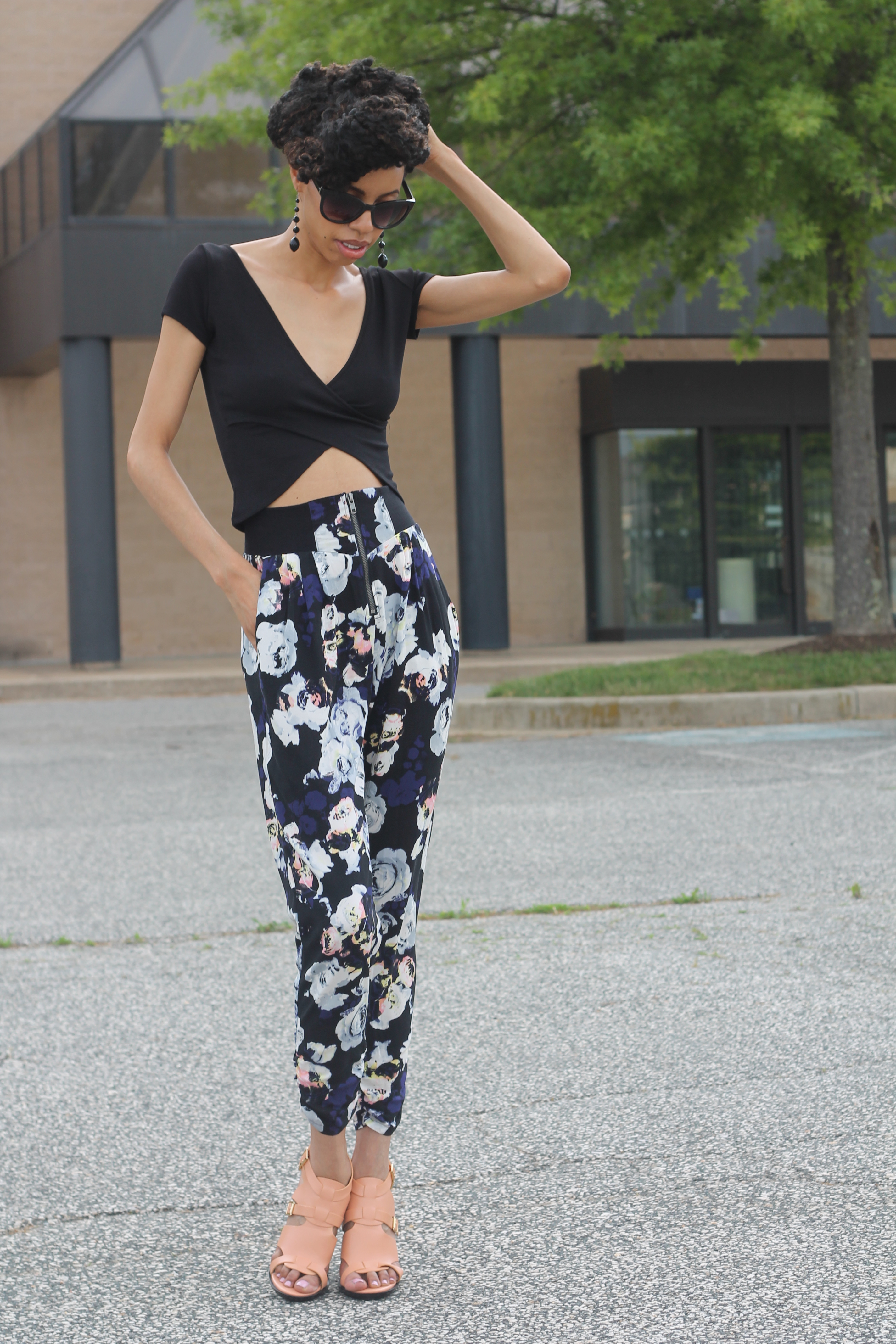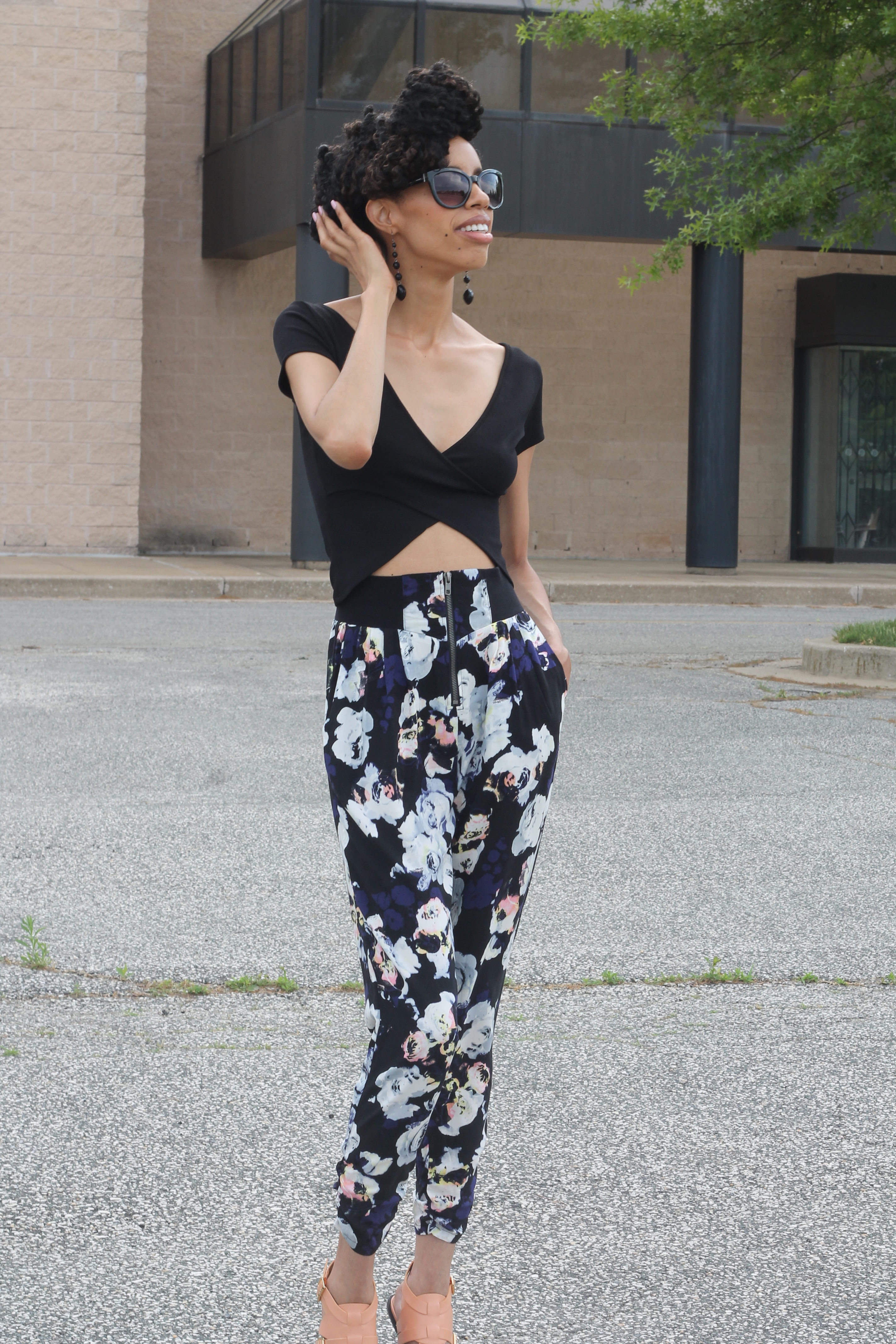 One of the keys to wearing floral prints flawlessly is to wear a top that’s the same color as one of the hues in the pants. Pairing your floral pants with a crop top is very romantic, just remember to keep it classy! Also, add glam accessories like a statement necklace or earrings and cute shoes. Another key to styling floral (which is not pictured) is wearing a graphic tee, a bright colored blazer or mixed prints by adding a different print, especially stripes! What is your favorite way to style florals?