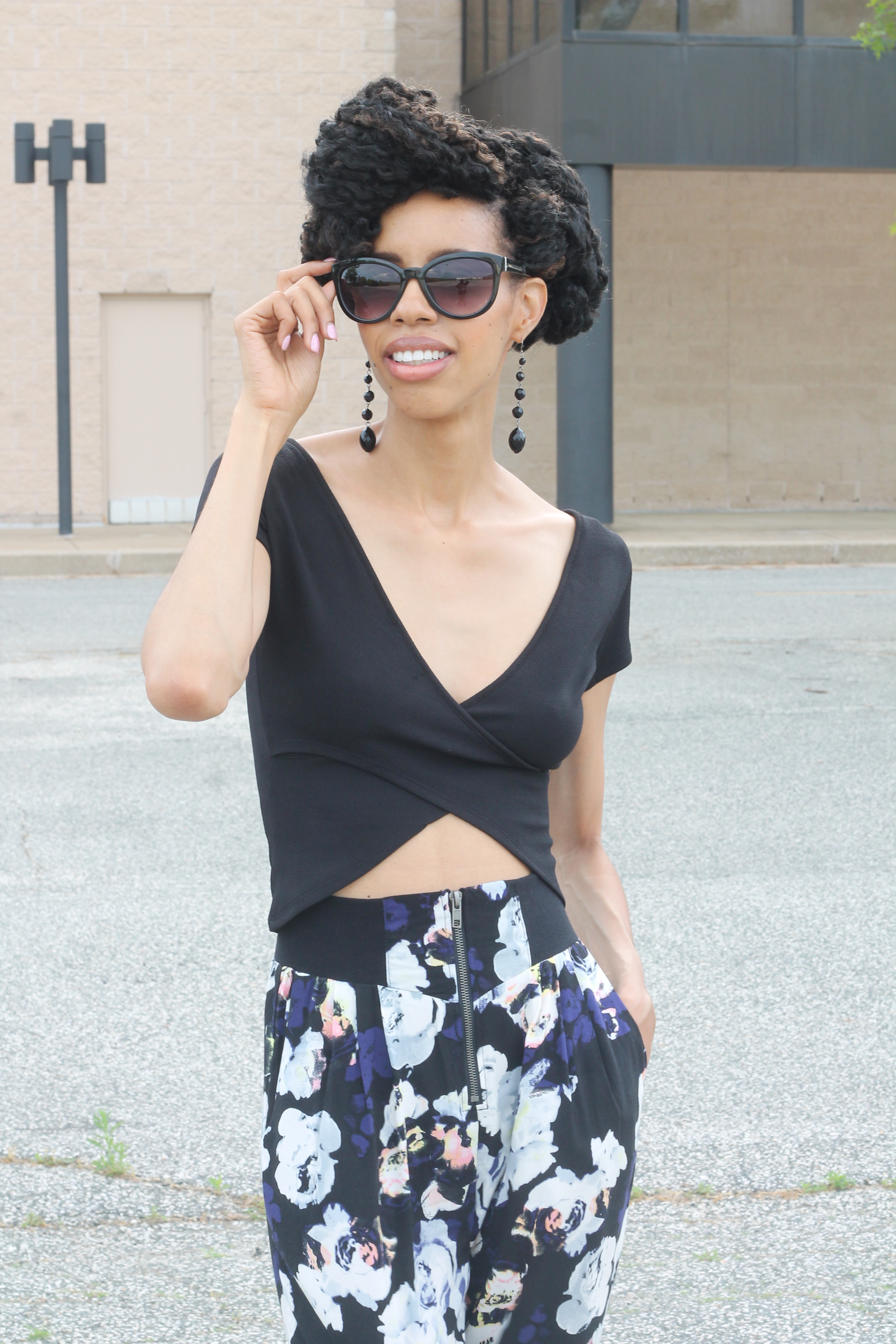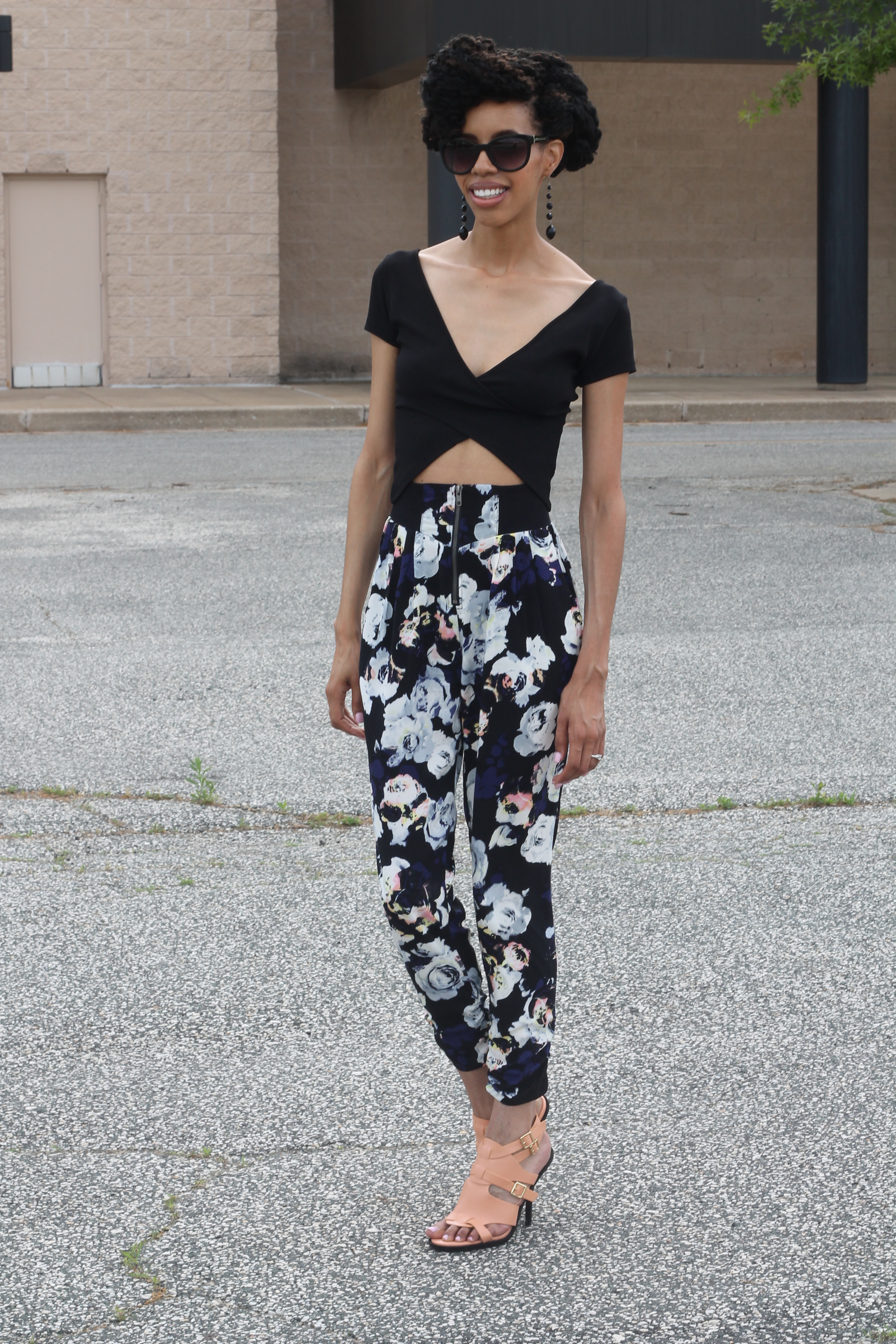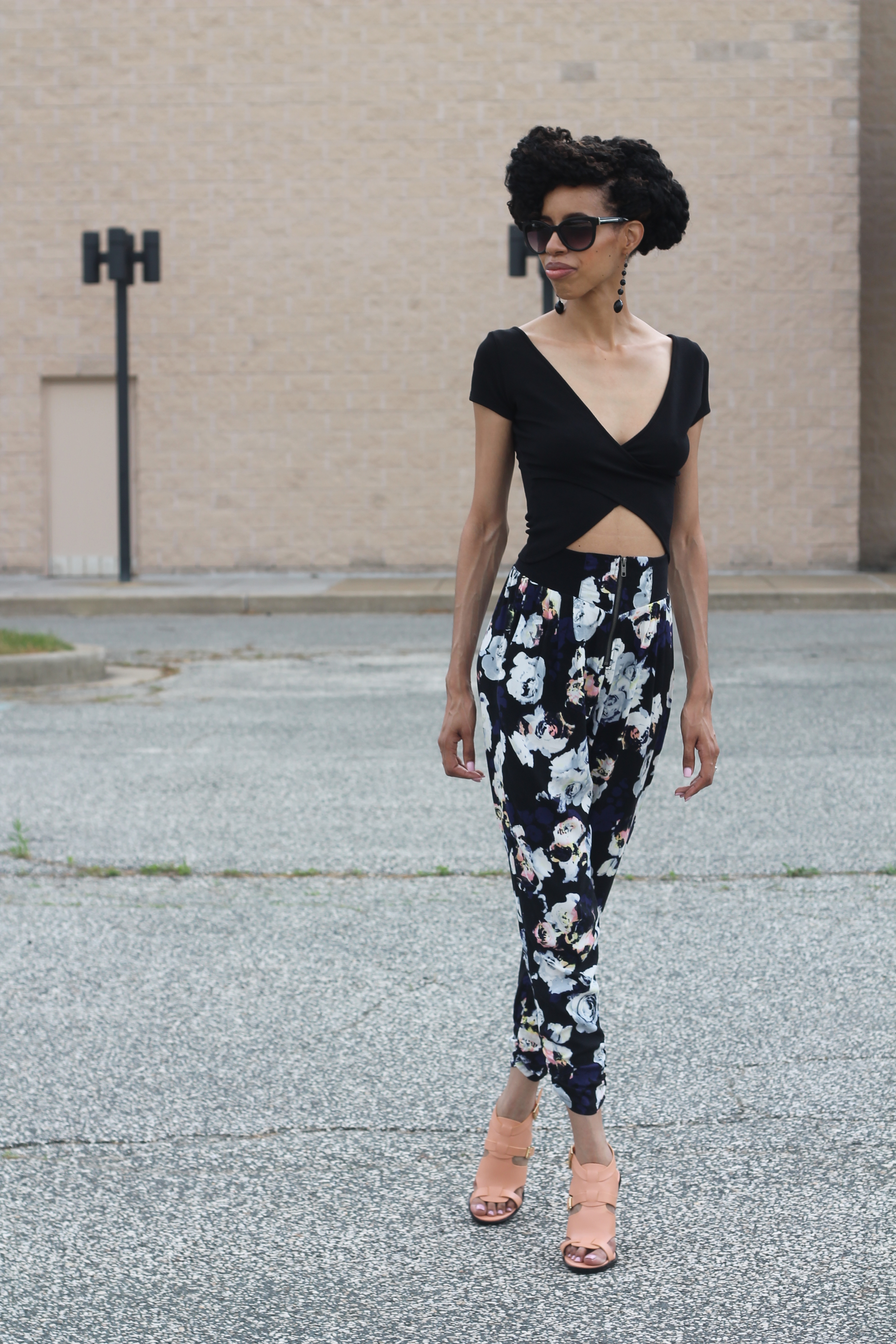 Crop Top, Earrings & Floral Pants: Macy’s | Shoes: ShoeDazzle