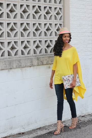 Handkerchief Tunic + Floral Clutch + Fedora