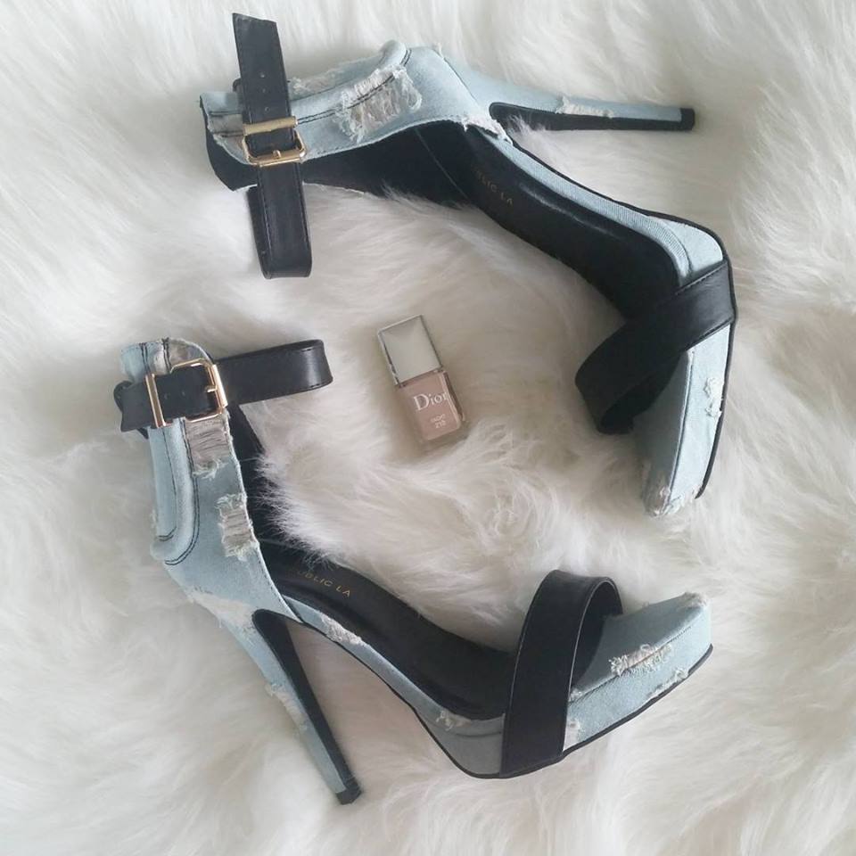 Denim heels in red, white, or jean. Also, a distressed denim pump!