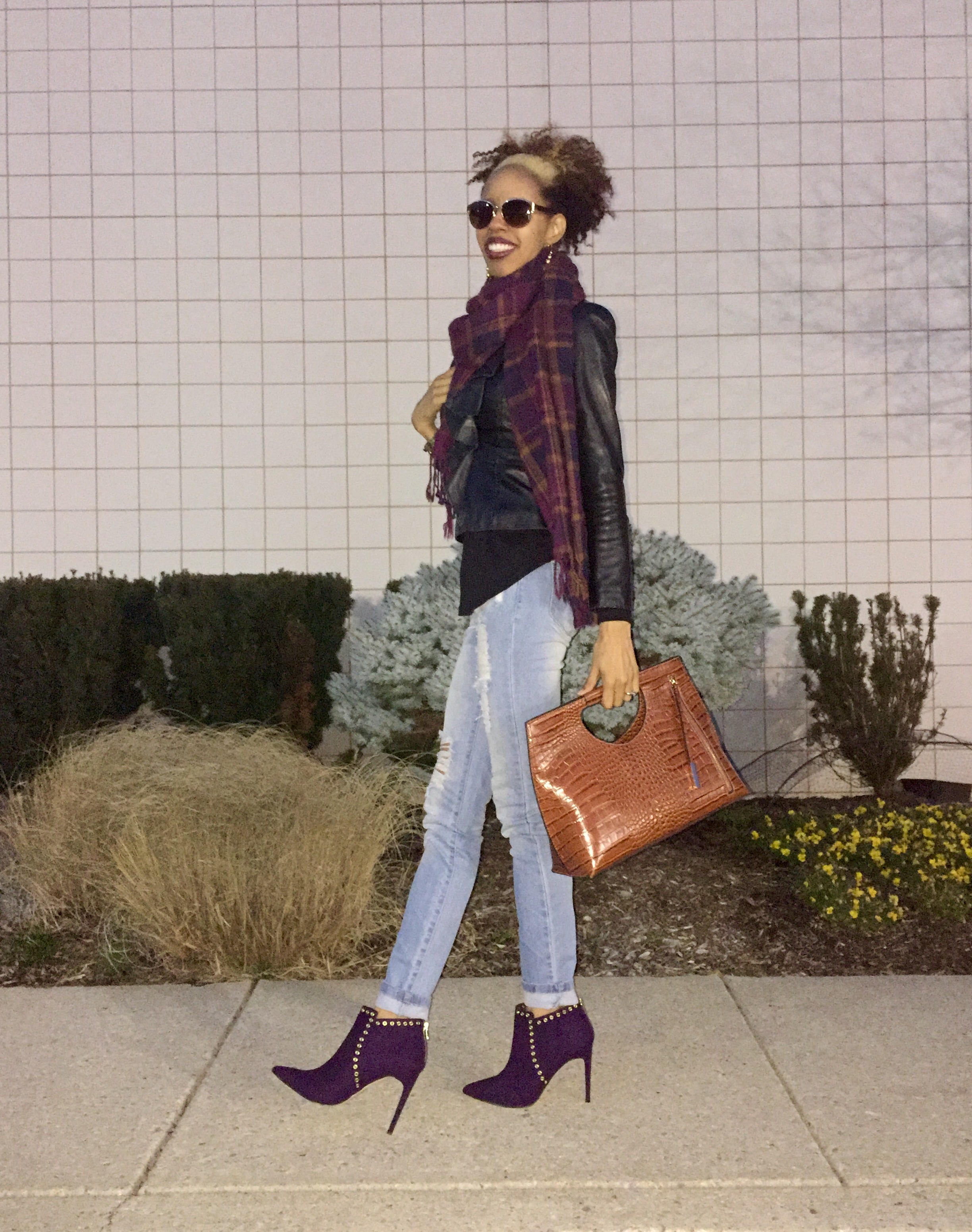 Well, I got a little more than Jorden… I also got this beautiful animal print clutch to accompany this royal purple bootie. I love the two together and the booties look even better in person than they did on the ShoeDazzle site! I won’t say that I would these beauties for a long time because standing in thin heels could make 10 minutes feel like an hour (lol). However, the shoes are bold and were essential to my wardrobe as purple is one of my favorite colors! What do you think of my new “beauties” and purse?