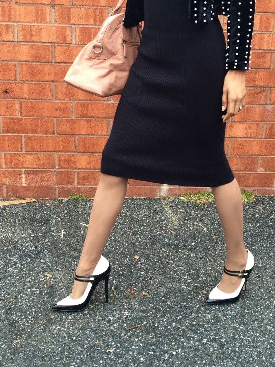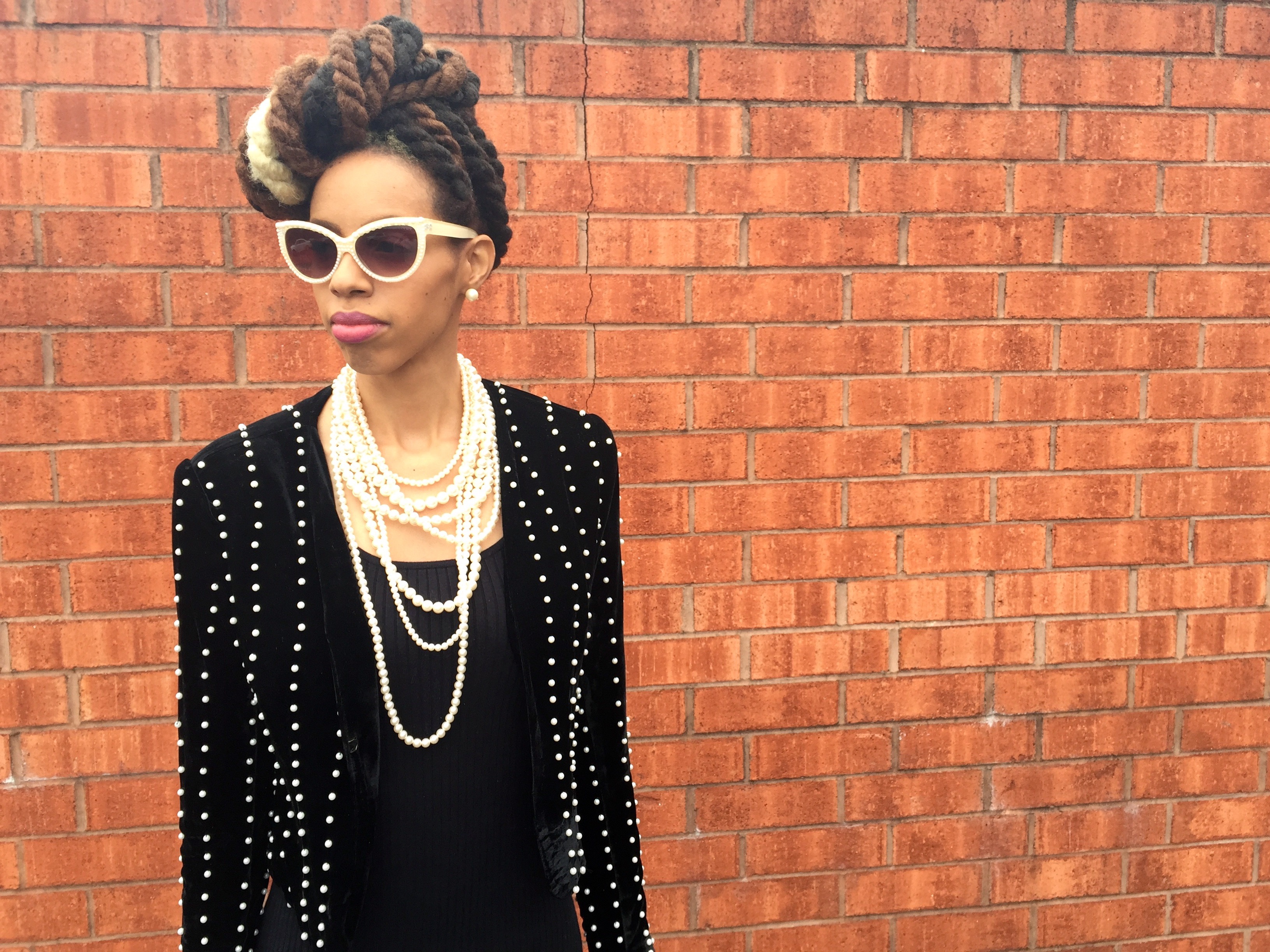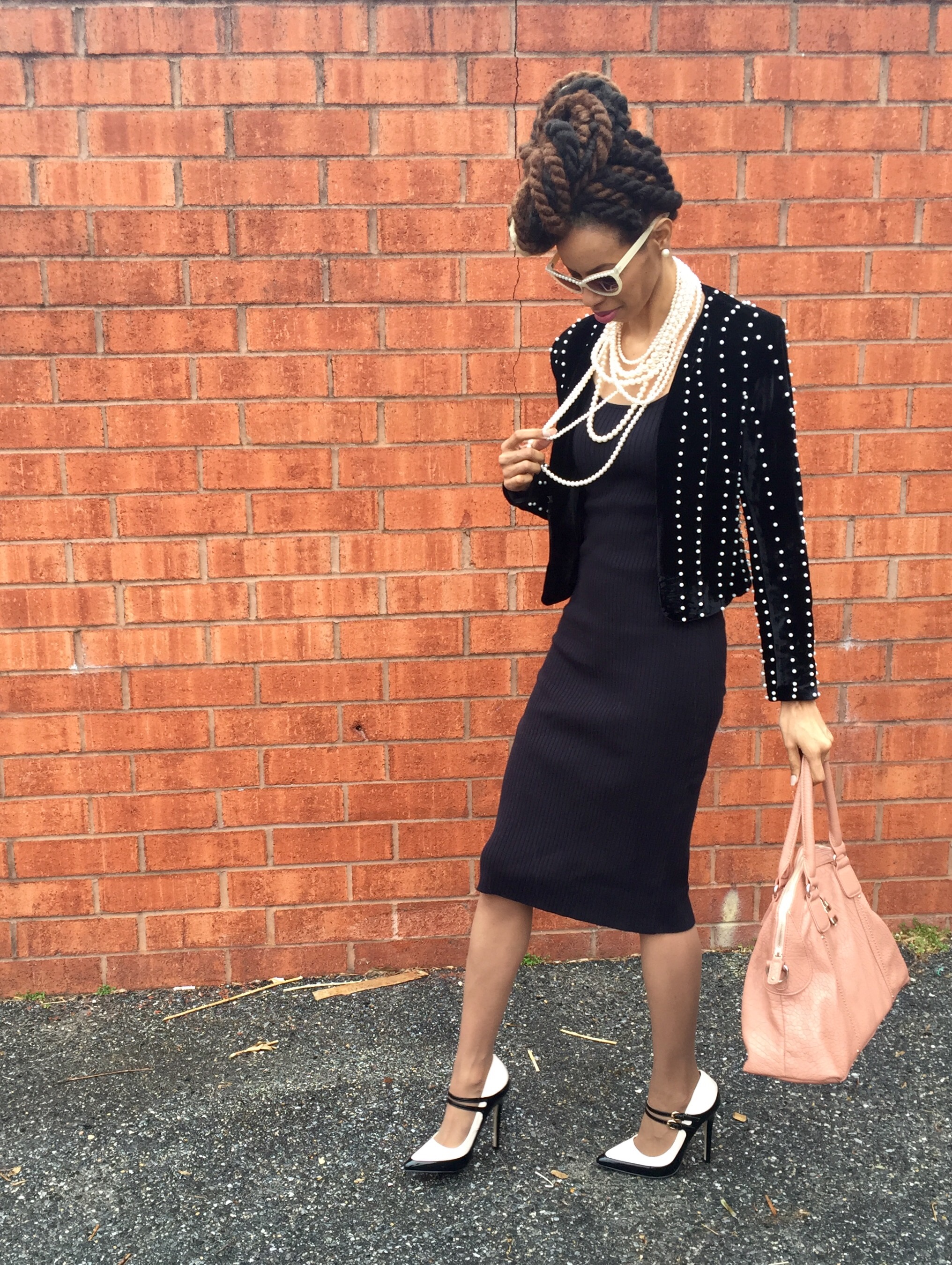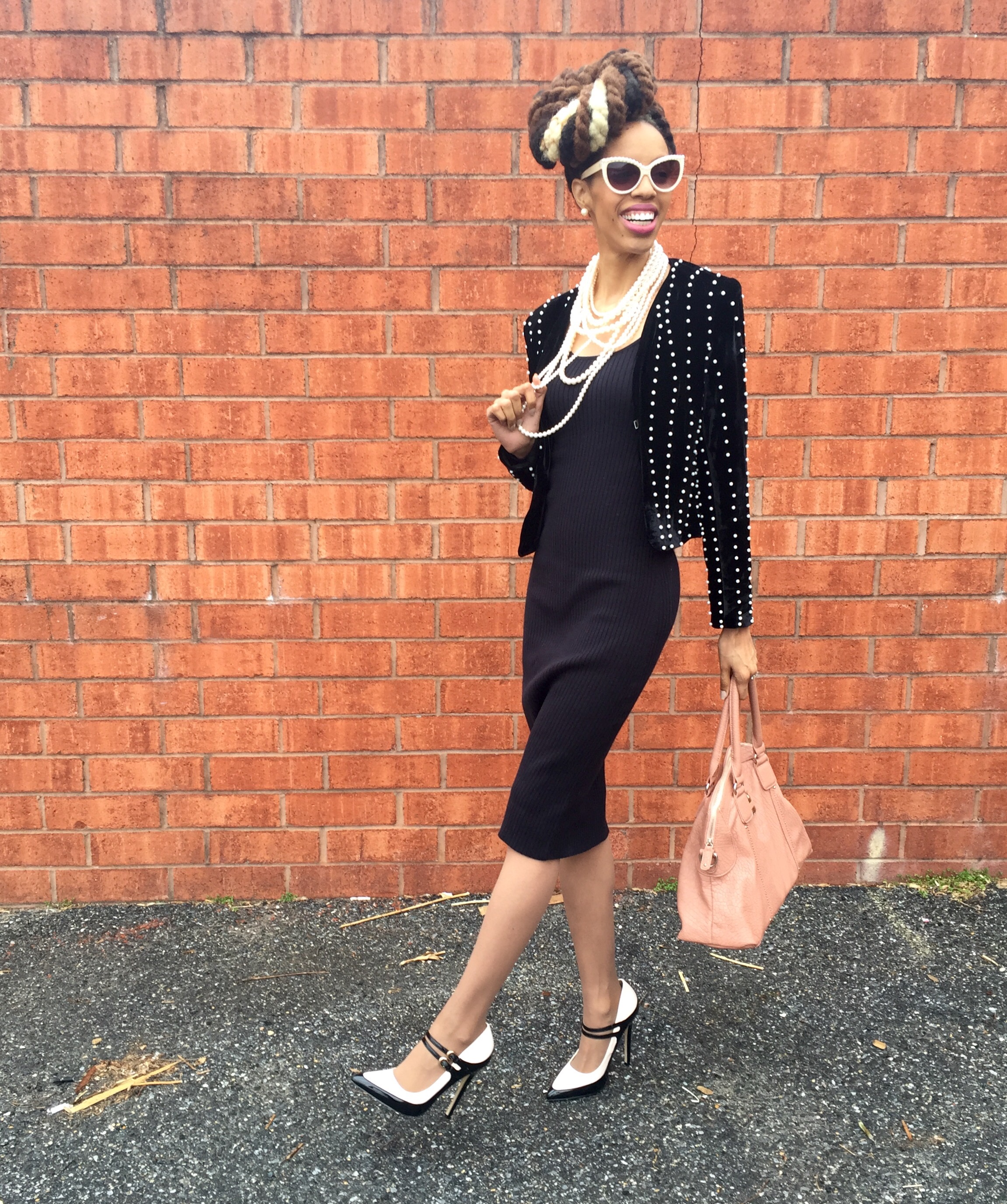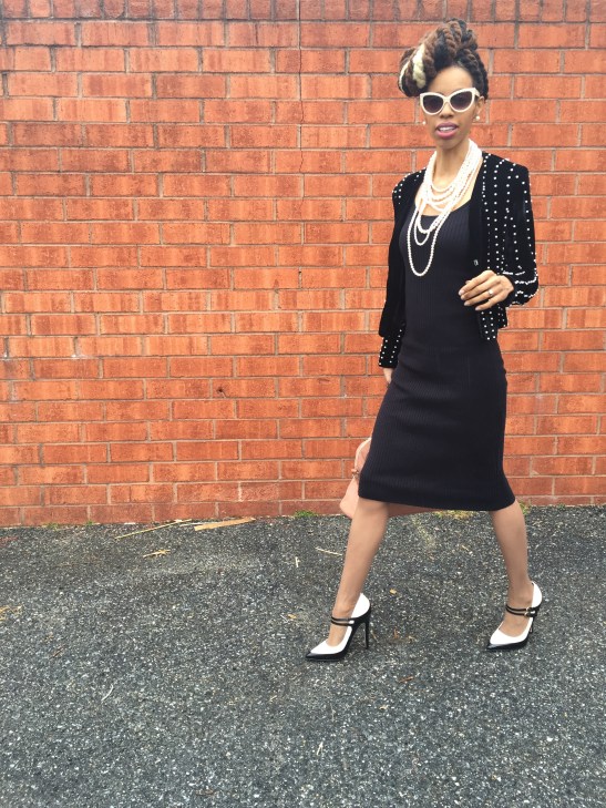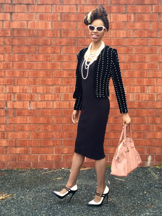 Shoes & Purse: ShoeDazzle. Pearl Blazer: Primrose BoutiQ. Sweater Dress: Victoria’s Secret. Sunnies: Francesca’s. Hair: Zarah Charm.