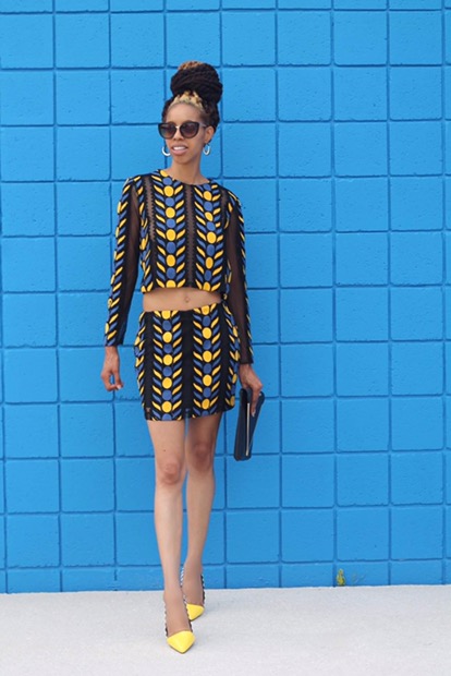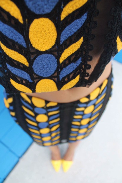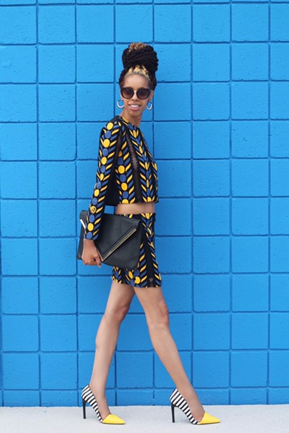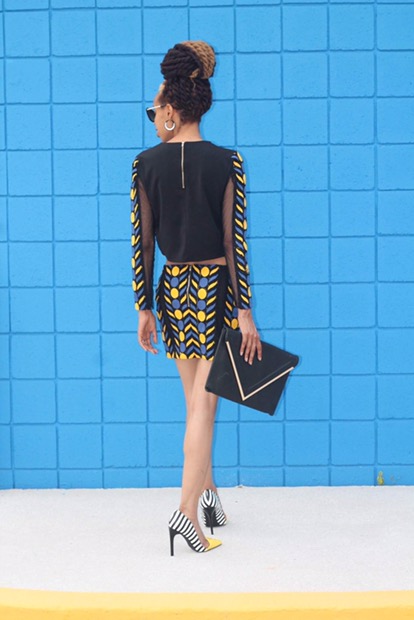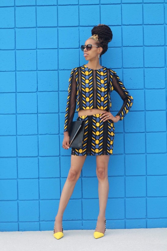Expecting a gown in this post? Lol! My idea of elegance is being tastefully regal. This chic ensemble pulled that out of me in this look! I love the class of this 2-piece set: delicate embroidery, sheer lace and a few peek-a-boo areas… Paired with this jazzy shoe for the ultimate print-on-print look!