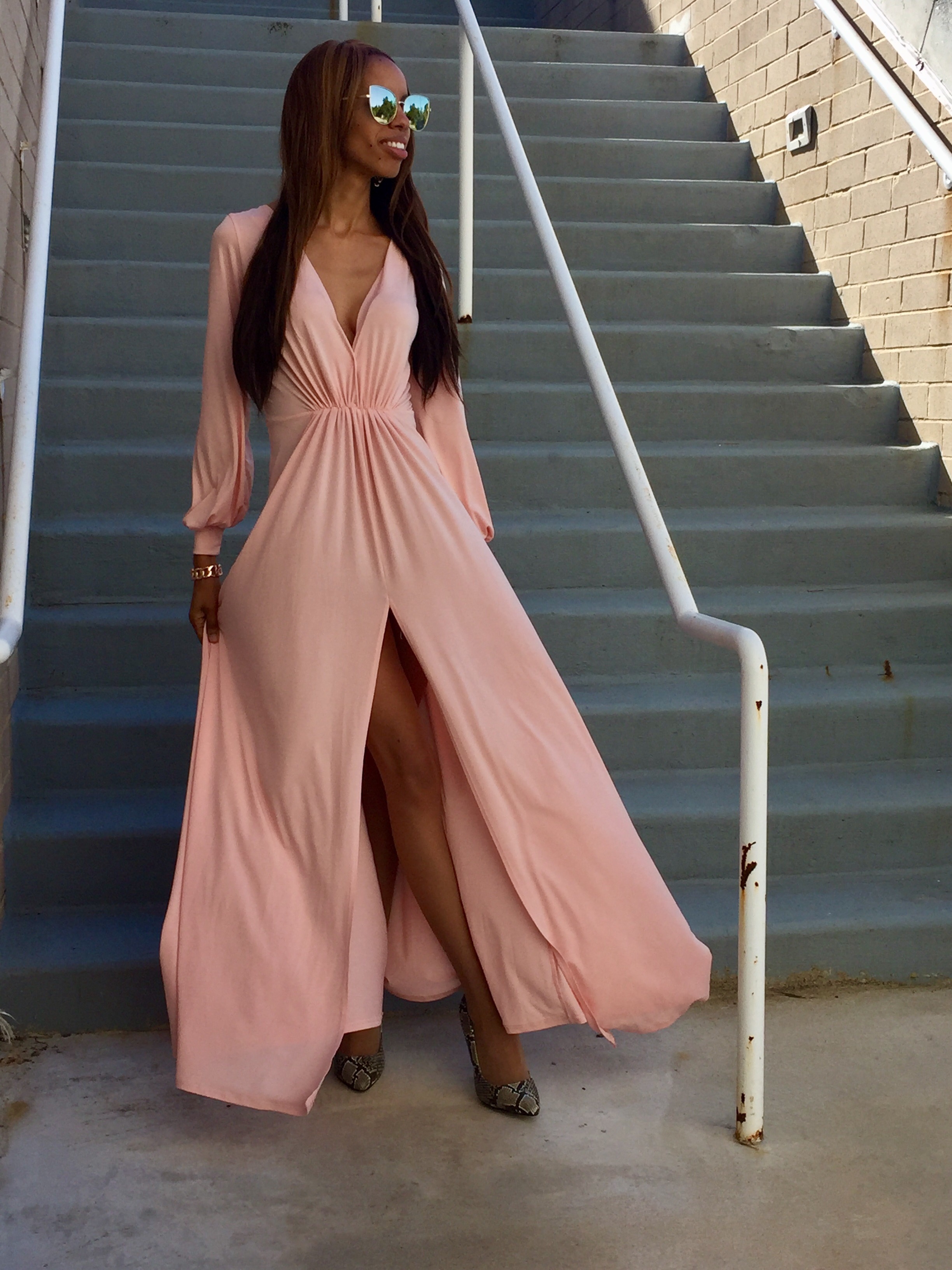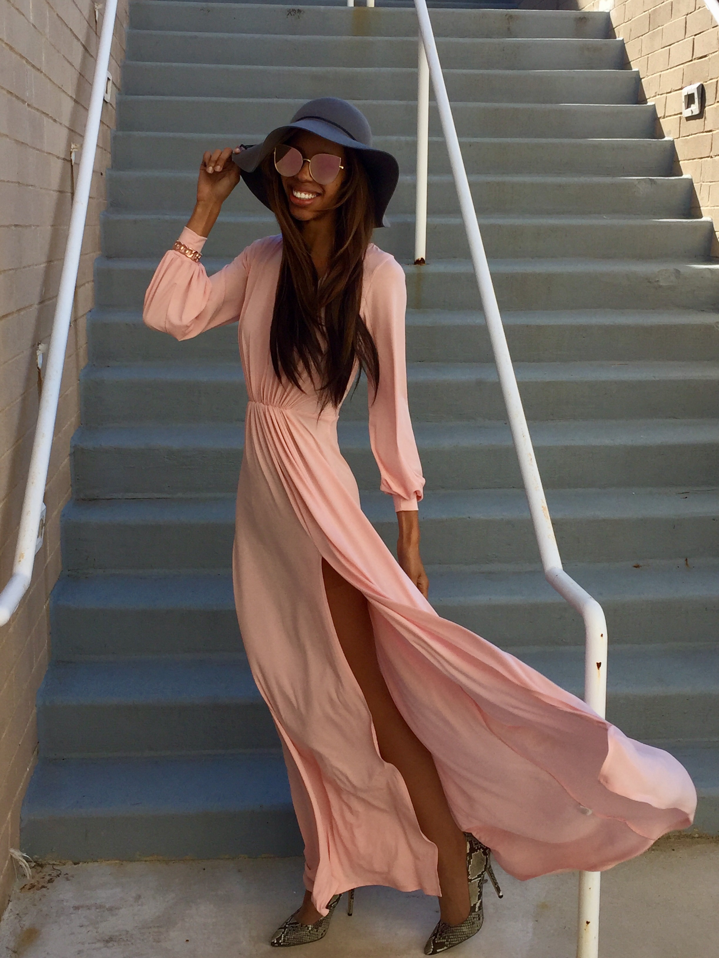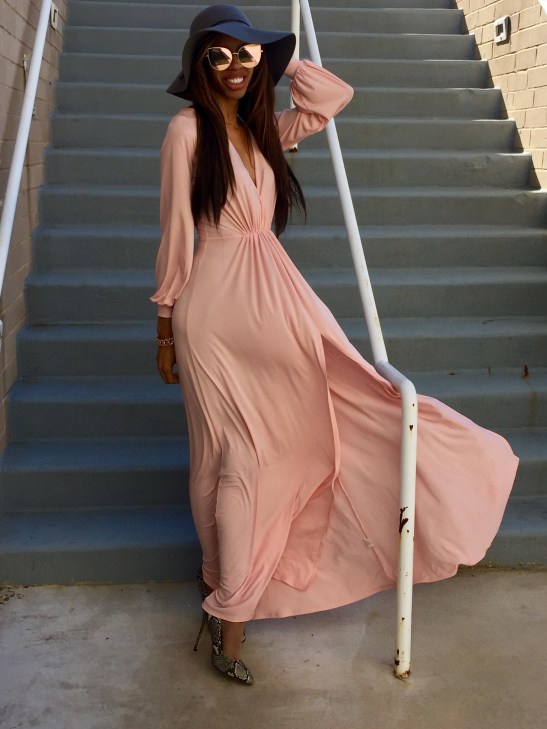10. Super cute maxi dress. I love the soft blush color. You paired it with a perfect pair of heels.
