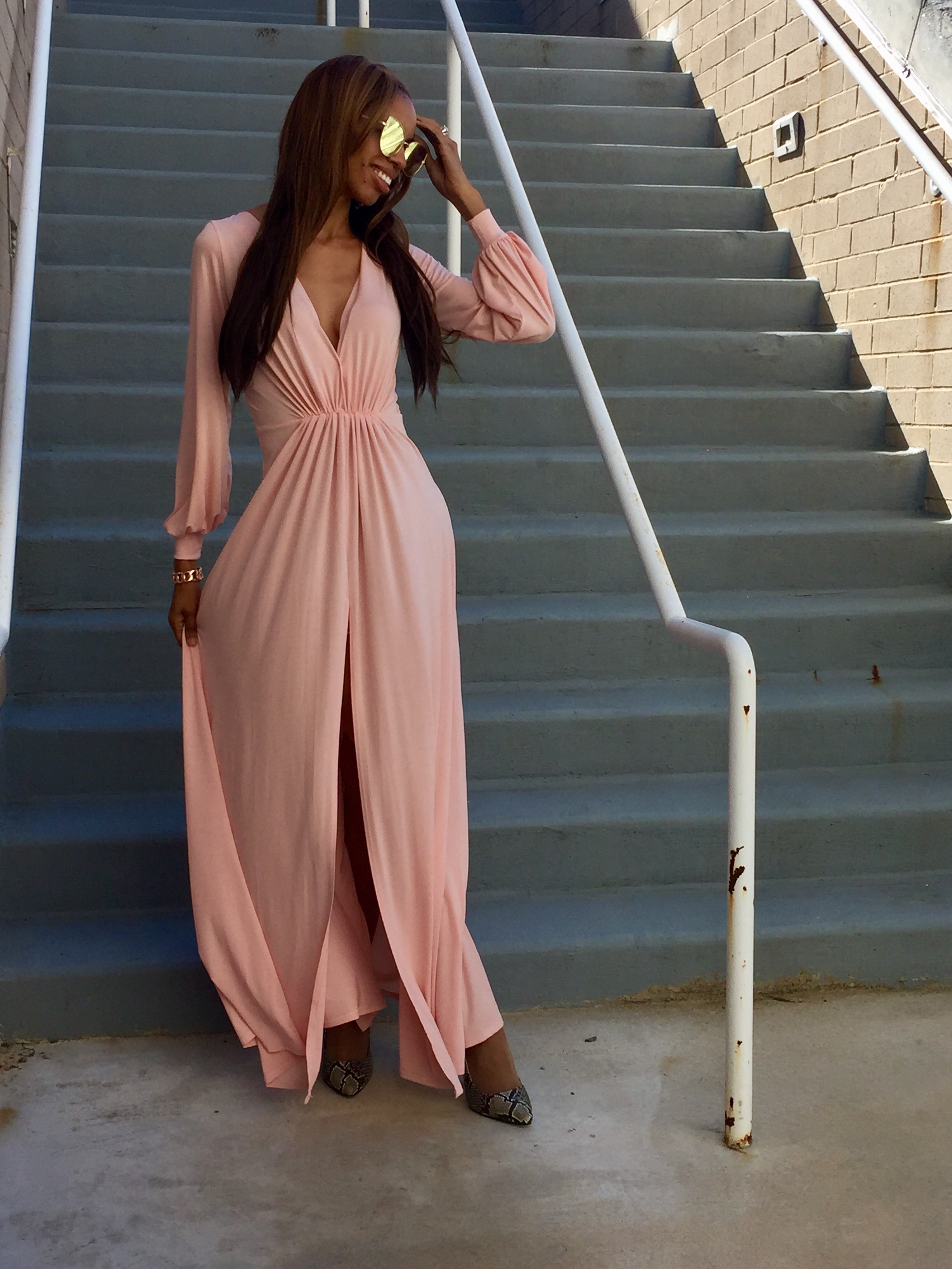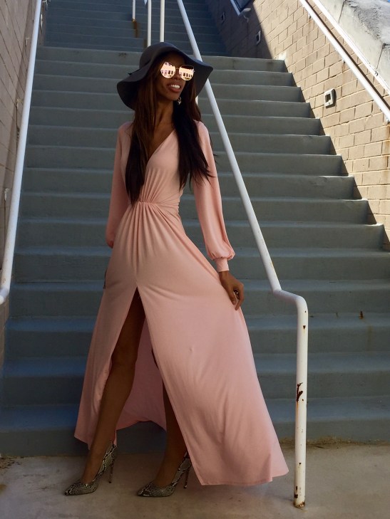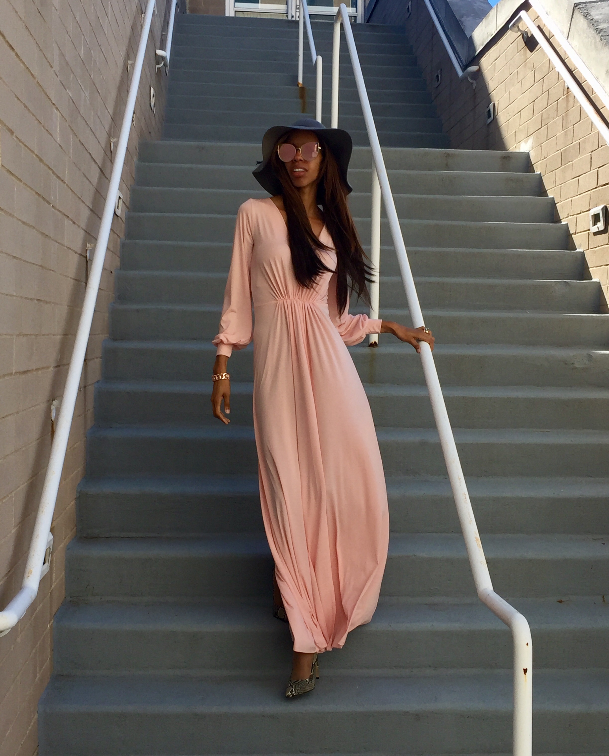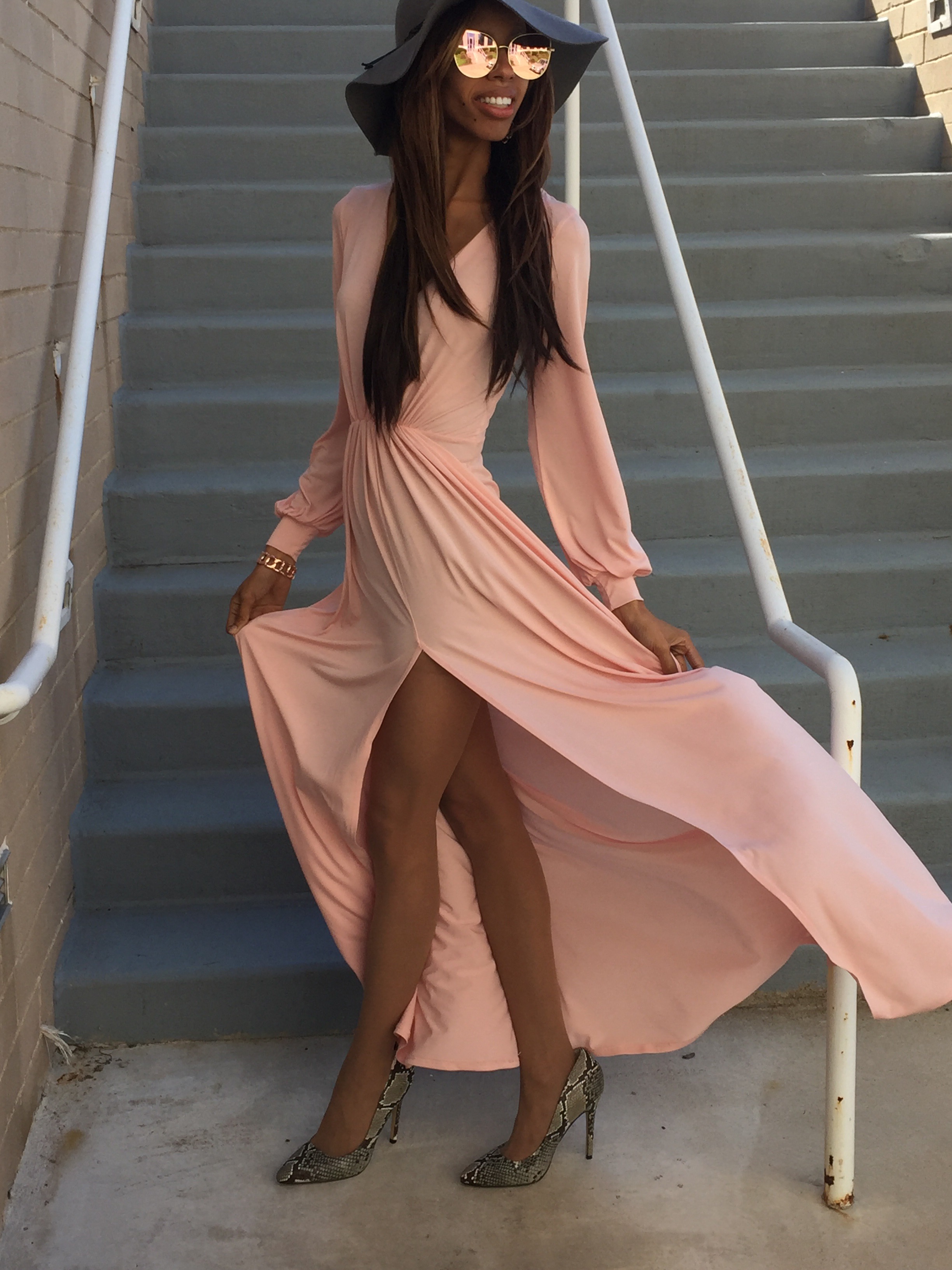 10. Super cute maxi dress. I love the soft blush color. You paired it with a perfect pair of heels.