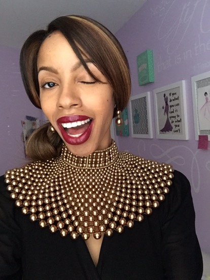 I love a dark lippie. This is a beautiful color you are wearing and that necklace is fire!