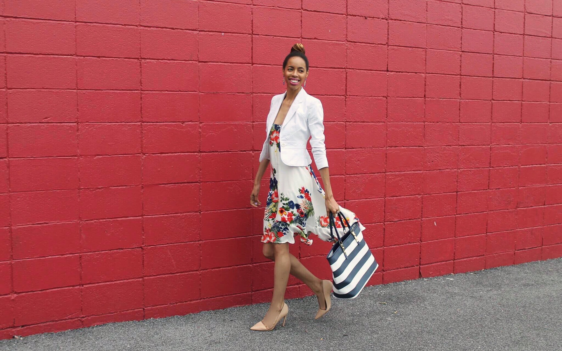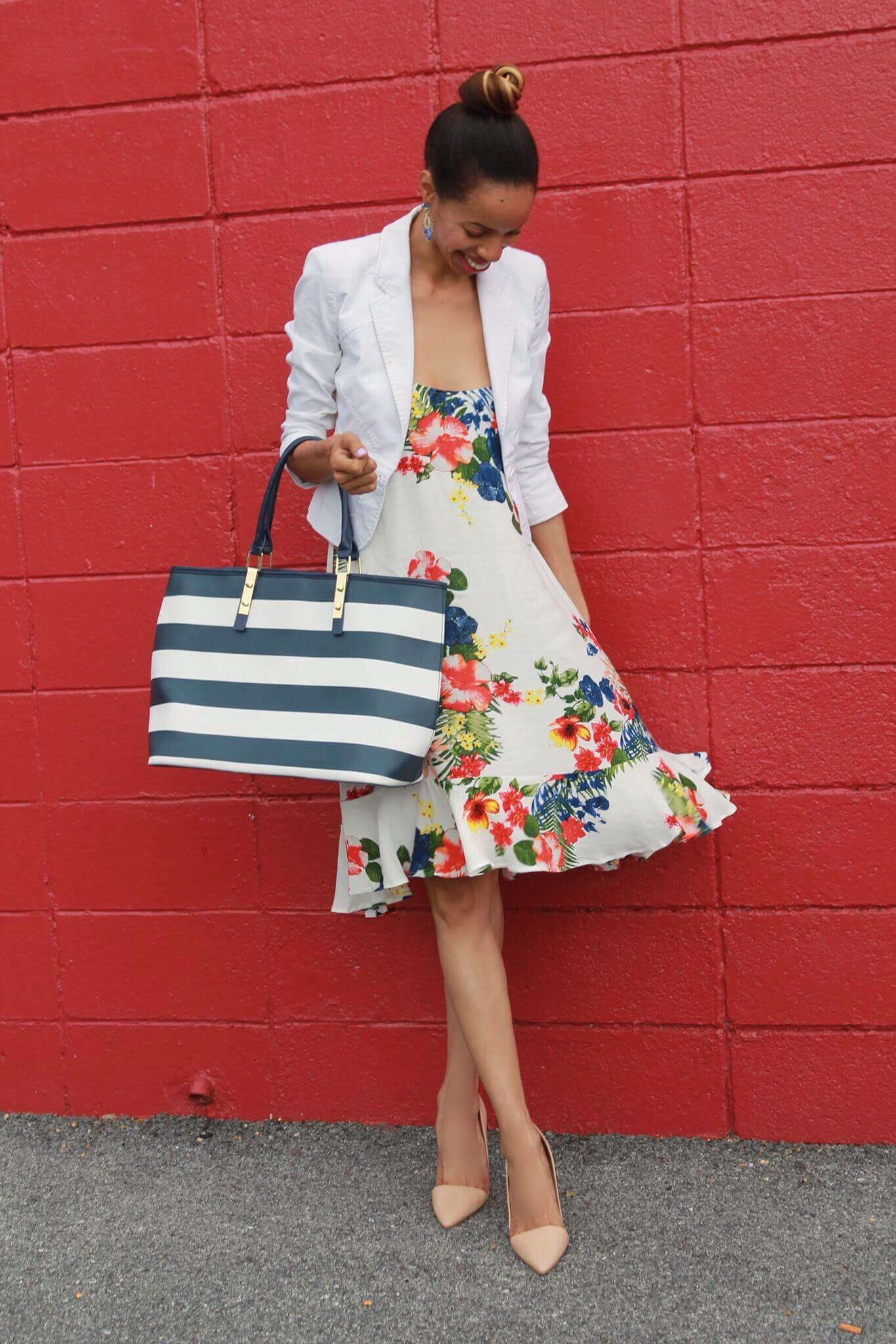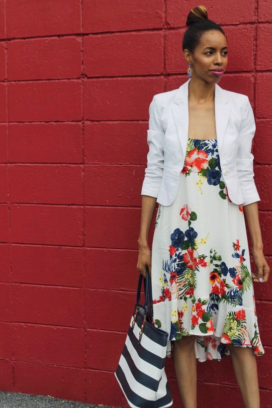 Everything about your outfit is beautiful – from the beautiful floral print summer dress to the chic handbag! I love your dress; it is definitely a perfect style for the Spring and Summer. I like how you paired it with the white jacket. You look great!