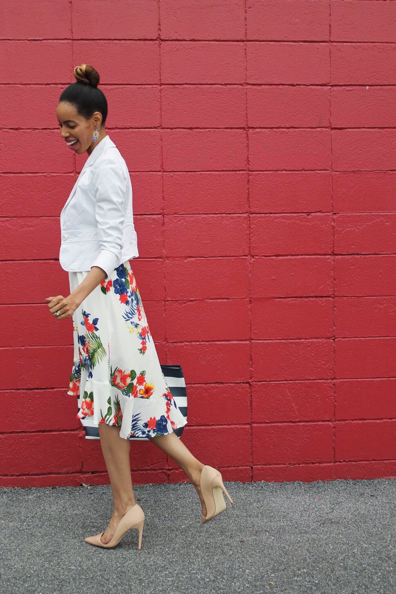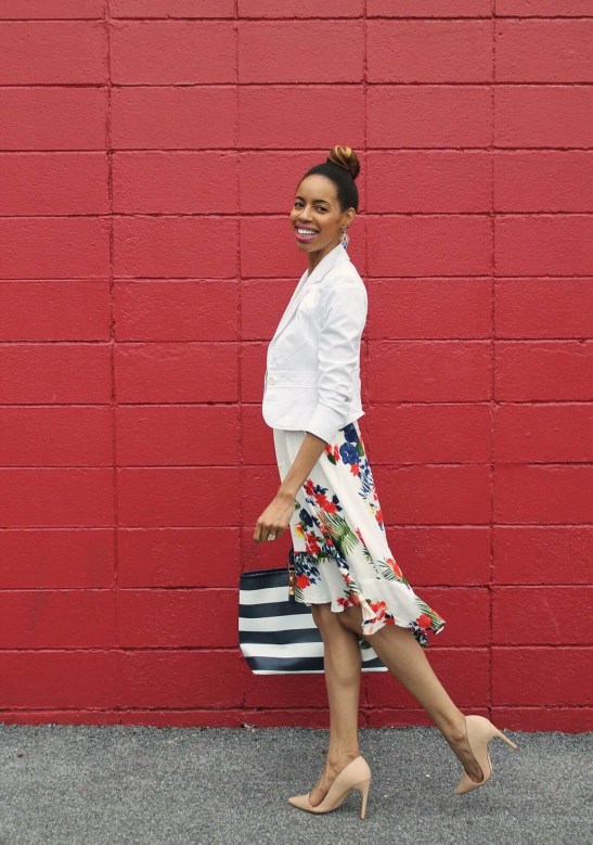 I wouldn’t have guessed that stripes and florals go together well. This is a really fresh and clean look. You working it.